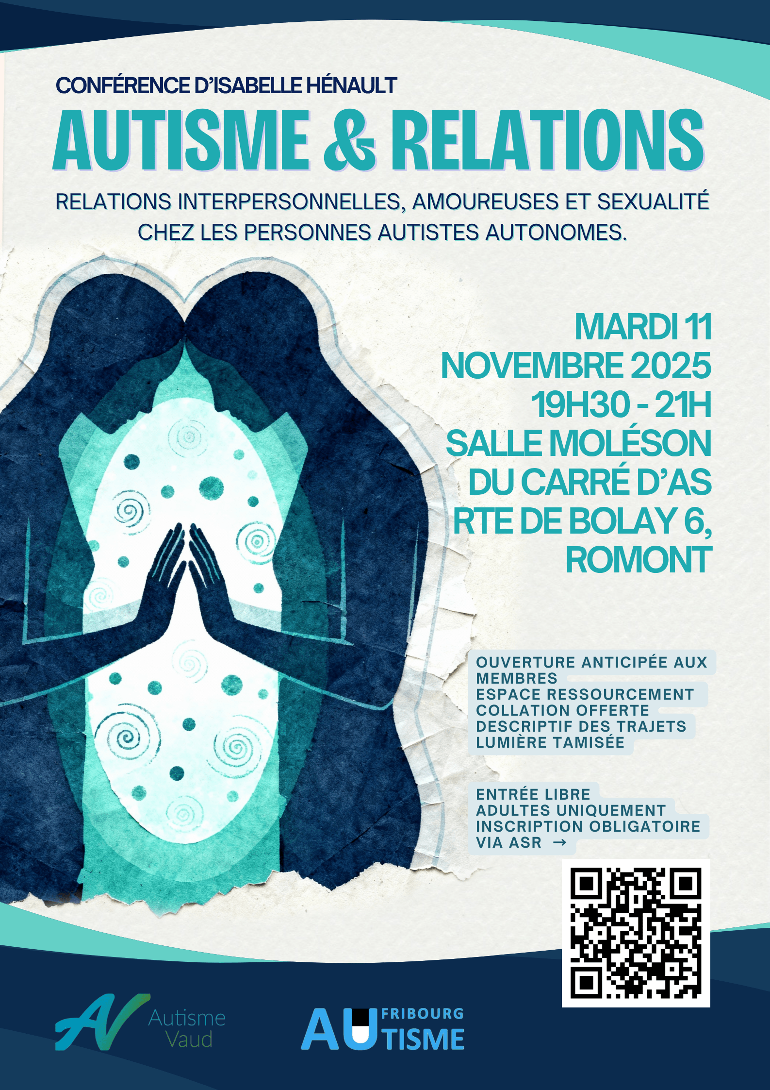 Autisme Fribourg et Autisme Vaud ont le plaisir de vous inviter à une conférence donnée par la Dre Isabelle Hénault, sexologue et psychologue.